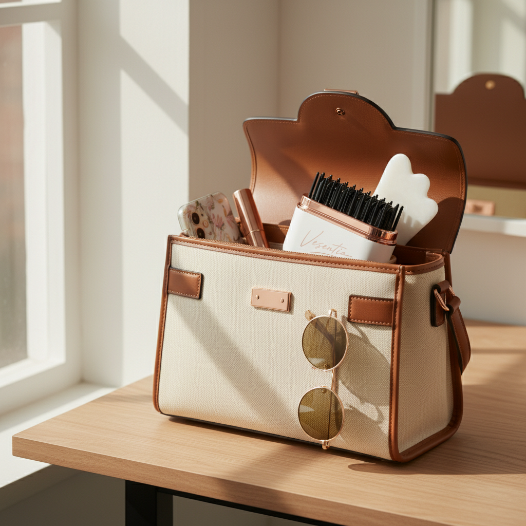 Use Vesentia like a regular comb. Brush slowly through fully dry hair using steady, natural strokes.No clamping. No complicated sections. Just controlled movement.